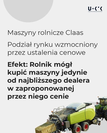 Przez ponad 11 lat rolnicy nie mogli kupić maszyn rolniczych# marki Claas i części zamiennych do nich w konkurencyjnych cenach i od samodzielnie wybranego sprzedawcy. Było to skutkiem porozumienia ograniczającego konkurencję. Prezes UOKiK Tomasz Chróstny wydał decyzję, w której nałożył na sześć spółek kary w łącznej wysokości ponad 170 mln zł.