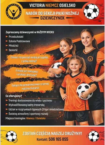 Klub sportowy Victoria Niemcz Osielsko zaprasza dziewczęta do rozpoczęcia piłkarskiej #przygody. Trwa nabór do wszystkich kategorii wiekowych – od najmłodszych zawodniczek aż po seniorki.