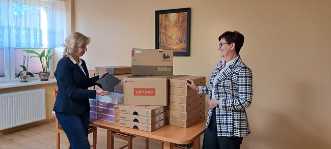 Łącznie do szkół prowadzonych przez Powiat Bydgoski przekazano 168 urządzeń, w tym laptopy, laptopy przeglądarkowe oraz tablety. Sprzęt trafił już do wszystkich szkół, a wczoraj Starosta Bydgoski Piotr Kozłowski przekazał go osobiście w Zespole Szkół Agro-Ekonomicznych Karolewo, natomiast Członek Zarządu Iwona Lichocka w Zespole Szkół Ogólnokształcących i Zawodowych w Solcu Kujawskim.