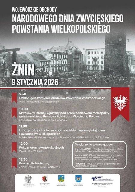 Uroczystości będą okazją do oddania hołdu Bohaterom Powstania Wielkopolskiego oraz wspólnego upamiętnienia jednego z najważniejszych zwycięskich zrywów niepodległościowych w historii Polski - w 107. rocznicę wybuchu Powstania. Styczeń jest szczególnie ważny dla mieszkańców regionu, ponieważ to właśnie wtedy – 11 stycznia 1919 roku - nastąpiło ostateczne wyzwolenie Żnina.