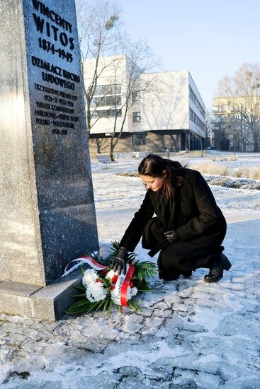 Przedstawiciele Delegatury Instytutu Pamięci Narodowej w Bydgoszczy z naczelnik Edytą Cisewską na czele złożyli w imieniu IPN kwiaty pod pomnikiem Witosa w Parku Ludowym w Bydgoszczy.