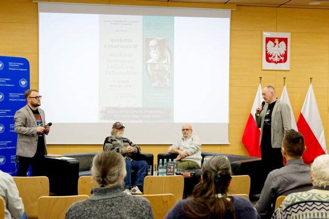 W czwartek odbyło się pierwsze spotkanie w ramach# nowego cyklu „Pogranicza historii”. Gośćmi byli pisarze science fiction Marek Oramus i Marek Żelkowski, a tematem rozmowy była „Fantastyka a PRL”.
