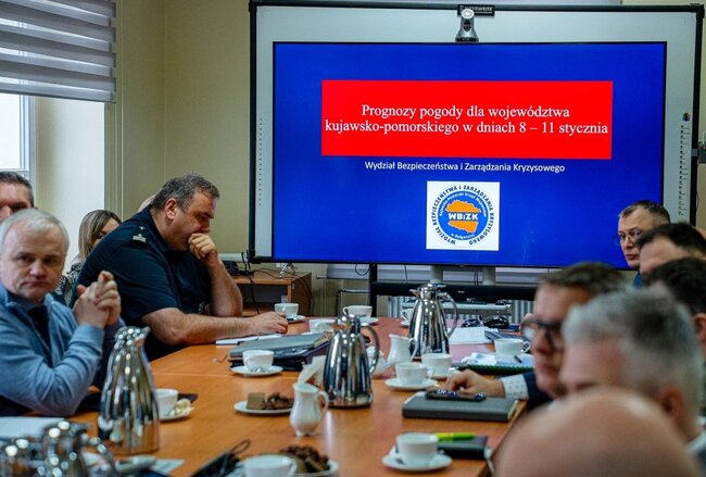 W Urzędzie Wojewódzkim odbyło się posiedzenie# Zespołu Zarządzania Kryzysowego zwołane przez Wojewodę Kujawsko - Pomorskiego Michała Sztybla. Spotkanie dotyczyło przygotowania służb w województwie kujawsko-pomorskim w obliczu możliwych sytuacji kryzysowych związanych z pogodą. Wojewoda odebrał również raporty służb z okresu świąteczno-noworocznego.