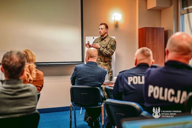 Dowódca odniósł się również do zasad funkcjonowania Układu Pozamilitarnego, podkreślając znaczenie skutecznej komunikacji, jasnego podziału odpowiedzialności oraz koordynacji działań pomiędzy strukturami wojskowymi a cywilnymi. Jego wystąpienie uzupełnił przedstawiciel Policji - komisarz Ryszard Nierebiński, akcentując potrzebę stałego doskonalenia współpracy między służbami oraz znaczenie systematycznych ćwiczeń praktycznych.