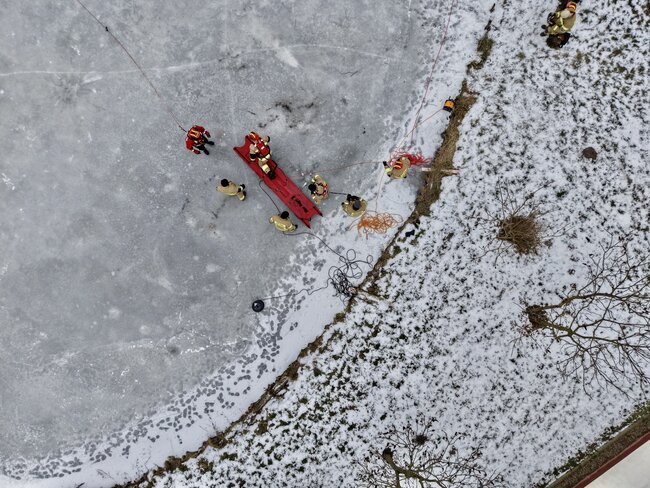 Pogoda ostatnio kapryśna, dlatego strażacy przygotowywali się w szczególności do podejmowanie poszkodowanego z wody. Dzieląc się krótką relacją na portalu społecznościowym, zaapelowali o rozwagę. - Zmienne temperatury powodują, że lód może miejscami być słabszy, a wychłodzenie następuje bardzo szybko odbierając siły do walki. Nigdy nie wchodźcie na lód nie będąc w zasięgu wzroku innych - poinformowali strażacy z OSP Gościeradz.