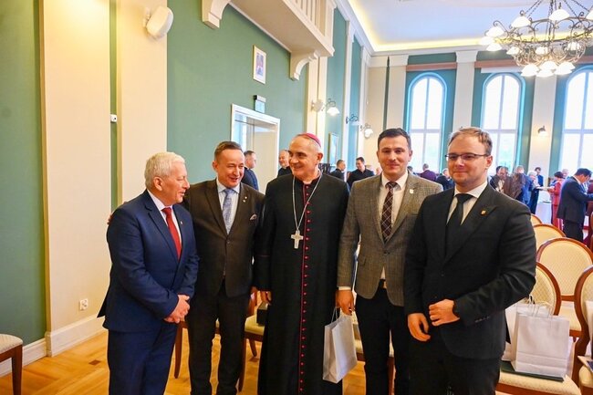 Według wicewojewody wielkopolskiego czas obchodów Bożego Narodzenia i świętowania Nowego Roku nie powinien ograniczać się tylko do wspominania tradycji. – Ten rodzący się maleńki Pan Jezus, owinięty w pieluszki, położony w żłobie, to cząstka nagiej prawdy, która dzisiaj tak często bywa zakłamywana, przeinaczana. Chociaż prawda zwycięży i zawsze się przebije, to zauważmy, jak ten otaczający świat potrafi dzisiaj ją niszczyć, wykorzystywać i nie w tym świetle stawiać, w jakim być powinna. Więc cieszymy się, że przychodząc tutaj możemy skorzystać z tego duchowego wsparcia. Z tego, że tutaj znajdziemy ten element odwzorowania dla tej małej, nagiej prawdy, rodzącej się w sercu każdego z nas – dodał Jarosław Maciejewski. – Pragnę podziękować księdzu biskupowi za niezwykle ważne, integrujące spotkanie. Mocno wybrzmiało, że żyjemy w trudnym czasie. Jako samorządowcy w szczególny sposób odczuwamy niepokój naszych mieszkańców o pokój, który jest zagrożony. Tak, jak zagrożony jest świat pewnych wartości, utrwalony przez dziesięciolecia – dodał członek zarządu województwa kujawsko-pomorskiego – Marek Wojtkowski.