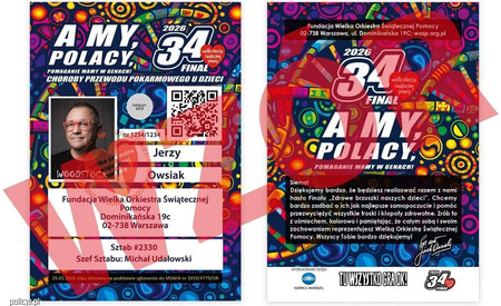 • Dodatkowo identyfikator musi mieć „serduszkowe” logo Fundacji Wielkiej Orkiestry Świątecznej Pomocy;