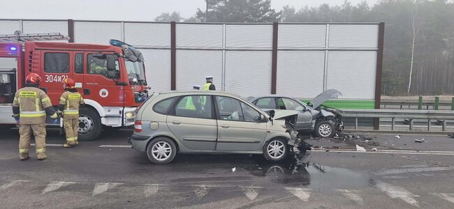 Zderzenie dwóch osobówek. Zablokowana droga sewisowa