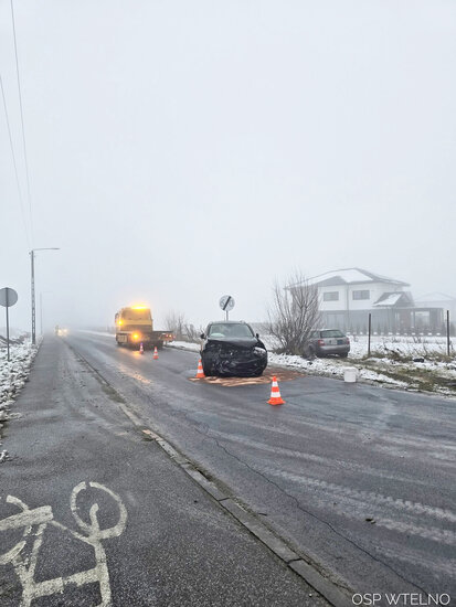 W poniedziałek, 1 grudnia strażacy zostali wezwani #do zderzenia dwóch samochodów osobowych na ulicy Bydgoskiej we Wtelnie.